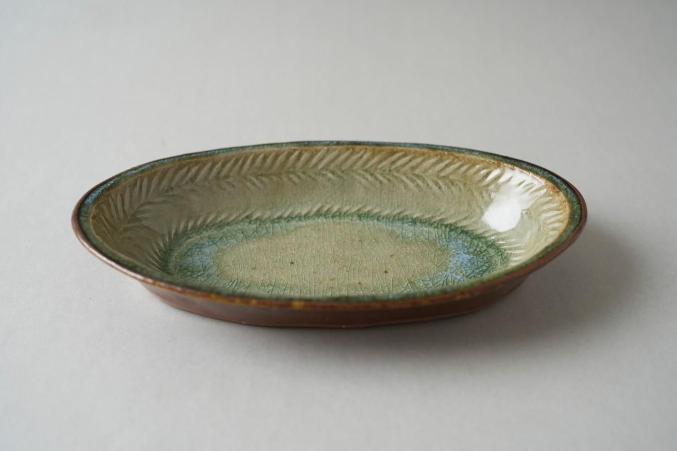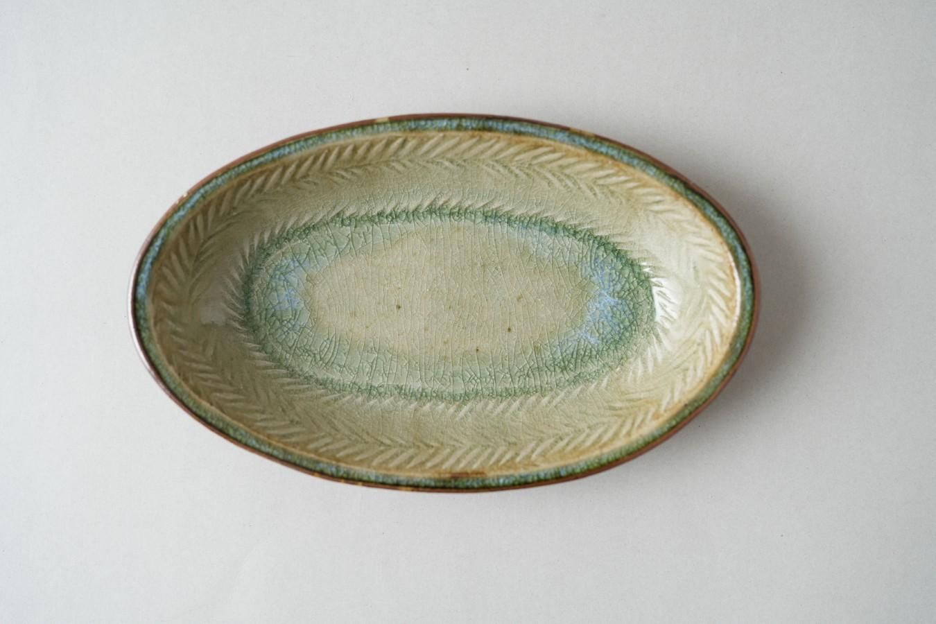 中嶋窯 - 楕円鉢〈灰・ヘリンボーンA〉